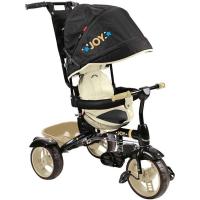 • Велосипед оснащен удобным сидением, карманом для мелочей на родительской ручке, подножкой для малышей, отстегивающимся козырьком от солнца и ремнями безопасности.