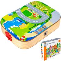 Суть игры: коробочка раскладывается в поле с дорогами. Сверху конструируются объемные элементы.