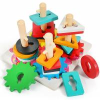 Задача малыша — нанизывать фигуры на штырьки в зависимости от задания: по форме, по цвету, в некой последовательности, по количеству.