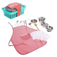 Набор металлической посудки «Супер Шеф», с фартуком и колпаком, в корзинке.