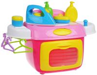 Набор "Чистюля" легко и компактно собирается. Он изготовлен из качественных и безопасных материалов, упаковка яркая и информативная. Особенности: Стиральная машинка светится и издает звук, будто и правда стирает вещи! 12 аксессуаров и весёлые наклейки входят в комплект. Характеристики: Размер игрушки в собранном виде: 27*26.5*20 см Набор работает от 2 батареек типа АА (не входят в комплект).