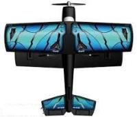 Модель самолета выполнена в черном цвете. Верхнюю часть крыльев и стабилизаторов украшает красивый принт.