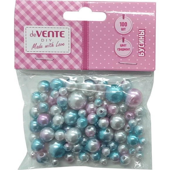 Бусины декоративные перламутровые "deVENTE. Green Forest" пластиковые, 100 шт, в пластиковом пакете с блистерным подвесом, 5 шт - 14 мм, 5шт - 12 мм, 20 шт - 10 мм, 70 шт - 6 и 8 мм, градиент мятно-розовый