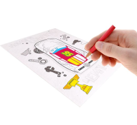 Основа раскраски — бумага с фактурой холста. На неё нанесён контур рисунка — малышу остаётся только взять карандаши из комплекта и создать шедевр.
