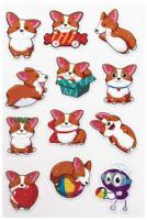 В наборе содержатся мягкие зефирные наклейки с изображением рыжего щенка корги в количестве 12 штук. Наклейки отличаются высочайшим качеством печати и цветопередачи. Милый коротколапый пёс никого не оставит равнодушным, поможет оригинально украсить тетради, дневники, гаджеты и любые поделки.