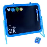 Доска выполнена из пластика. Одна сторона предназначена для рисования мелками, а магнитная поверхность — для рисования водными маркерами. В комплект входят яркие магниты, мел, губка для стирания, водный маркер.