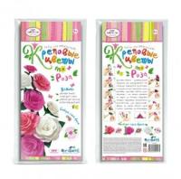 В наборе: креповая бумага, основа для стебля, шаблон для листьев и лепестков, декор, клей.