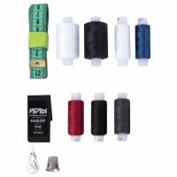 В набор входит 7 катушек армированных ниток в намотке 200 м стандартных цветов (толщина нити 100 ЛЛ - 2 штуки; 35 ЛЛ - 5 штук), иглы для ручного шитья разных размеров - 10 штук, сантиметр, наперсток, нитковдеватель. Поставляются в пластиковом прозрачном боксе с удобной крышкой. Материал состоит из прочной армированной нити.