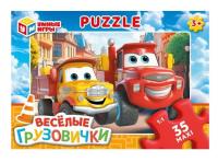 Классические пазлы на 35 крупных элементов "Веселые грузовички" понравятся юным поклонникам мультфильмов. Задача ребёнка – в правильной последовательности соединить элементы пазла друг с другом и получить в результате красочную картинку с изображением любимых персонажей, которая потом сможет стать украшением его комнаты. Сборка пазлов - увлекательное занятие, в процессе которого дети учатся искать и совмещать детали разной формы, с каждым разом делая это всё лучше и быстрее.