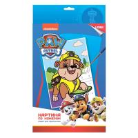 • В набор входит картинка для раскрашивания, на которую нанесена нумерованная схема рисунка, набор акриловых красок и кисть.