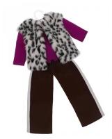 трикотажный джемпер с длинными рукавами, жилет из искусственного меха, брюки с лампасами из габардина