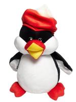 Мягкая игрушка пингвин в красной шапке.