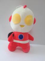 Мягкая игрушка робот в красном костюме и с желтыми глазами.