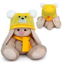 - на Зайке Ми одет очаровательный жёлтенький комплект (шапочка с мордочкой медвежонка и шарфик из флиса);