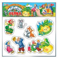 Данный набор содержит 7 фигурных магнитов в виде героев известной сказки и определённых сцен из неё. С их помощью он сможет воспроизвести сказочный сюжет, расставляя фигурки в определённой последовательности. Магниты можно крепить к любой ровной металлической поверхности (например, на холодильник) или на магнитную доску.