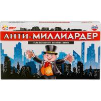 "Анти-миллиардер" - это экономическая игра, которая позволит игрокам почувствовать себя амбициозным предпринимателем, вращаясь в динамично развивающемся мире недвижимости. "Анти-миллиардер" - одна из самых увлекательных настольных игр, которая обучает торговле недвижимостью. Игра предлагает путешествовать по городу в поисках самой прибыльной собственности: железнодорожные станции и коммунальные предприятия, банки, отели и кинотеатры ждут своих хозяев. Вкладывайте средства в дома и отели, и тогда готовьтесь к потоку арендной платы. Заключайте сделки с другими игроками, ищите выгодные возможности на аукционах - способов заработать огромное множество.