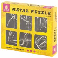 Металлический пазл представляет собой два элемента, изготовленных из стали диаметром 3,5 мм. Смысл решения головоломки в том, чтобы разъединить ее части, а затем соединить обратно. В коробке 6 разных головоломок, решение находится внутри.