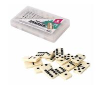 Настольная игра "Домино" - это современный вариант классической игры домино. В наборе 28 пластиковых костяшки белого цвета с черными точками, обозначающими комбинации чисел на двух полях. Размер костяшек - 48,5х24х7,8 мм.