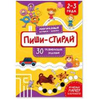 Многоразовая тетрадь Пиши-Стирай для детей 2-3 лет. Обучение в игровой форме, интересные задания, маркер, который ребенок может сам стереть салфеткой или губкой на колпачке, все это делает рабочую тетрадь уникальной и любимой развивашкой ребенка.