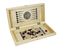 Комплектация: шашки, игровые кубики, игровое поле, правила Материал: пластик, древесина Упаковка: деревянная коробка Размер упаковки: 35*15*3 см Возраст: 6+ Количество предполагаемых игроков: 2 Страна обладатель бренда: Россия Занимательная настольная игра обязательно понравится как детям, так и взрослым. Это отличный подарок, который заинтересует Вашего ребёнка. Настольная игра "Нарды" представляет собой шкатулку, выполненную из фанеры, оформленную узором, и закрывающуюся на замочек. Внутренняя часть шкатулки представляет собой игровое поле.