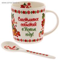 Кружка с ложкой "Счастливых событий" символ года, 300 мл — креативный и полезный сувенир с тёплыми пожеланиями и весёлым дизайном для близких и родных! Изделие имеет оптимальный объём и красочные рисунки. В комплекте есть маленькая ложечка, которая позволит совмещать приятное чаепитие и наслаждение от вкусного десерта.
