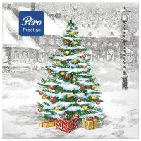 Упаковка содержит 20 салфеток размером 33х33 см. 3-слойные салфетки 1/4 сложения выполнены в праздничном дизайне.