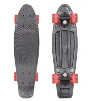 Модель в графитовом цвете. Классический размер пластиковой деки позволит с комфортом передвигаться по городу. Усиленная пластиковая подвеска рассчитана на небольшие нагрузки. Колеса и бушинги из ПВХ достаточно жесткие, как раз подходящие для тех, кто пока учится кататься без маневренных поворотов и на небольшой скорости. Материалы комплектующих отличаются незначительным весом, что делает круизер гибким и легким. Дека имеет рифленую поверхность, служит для хорошего сцепления с подошвой.