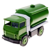 Игрушка «Бензовоз» выглядит очень реалистично, хорошо проработана и детализирована. Она большая — 38 см в длину, способна перевозить кукол и разные жидкости.