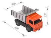 Без самосвала просто не обойтись на стройке! Колеса на металлических осях и специальная рама позволяют игрушке выдержать достаточно большой вес и перевезти игрушки или стройматериалы в пункт назначения.