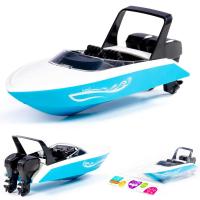 Игрушка выполнена в яркой расцветке, конструкция предполагает наличие сидений, имитацию стекла и мотора. На сидение катера можно посадить небольшие фигурки. С таким катером можно устроить большое количество интересных и увлекательных сюжетных игр.