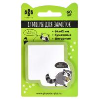 Стикеры для заметок бумажные, 64х62 мм, 60 шт., арт. 65169 / 25 ЕНОТ (материал: дизайнерская бумага 80 г/м², цвет: зелёный; кол-во цветов: 1, кол-во каждого цвета: 60, форма: фигурная, декор: полноцветная печать; наличие диспенсера: нет, особенности: фигурная вырубка; индивидуальная упаковка: подложка с европодвесом из мелованного картона + ПЭТ-пакет)