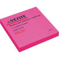 Клейкая бумага для заметок "deVENTE" 76x76 мм, 100 листов, офсет 75 г/м², неоновая малиновая