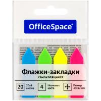 Самоклеящиеся пластиковые флажки-закладки в виде "стрелок" 45 х 12 мм. 4 ярких неоновых цвета по 20 закладок в блоке. Общее количество закладок: 80 шт. Упакованы в пакет с европодвесом.