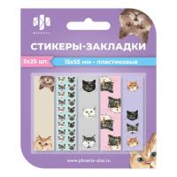 Стикеры-закладки пластиковые, 15х55 мм, 125 шт., арт. 65025 / 48 КОТЫ (материал: пластик цвет: голубой, фиолетовый; кол-во цветов: 5, кол-во каждого цвета: 25, форма: прямоугольная, декор: полноцветная печать; наличие диспенсера: нет, особенности: подложка прозрачная из ПВХ; индивидуальная упаковка: подложка с европодвесом из мелованного картона + ПЭТ-пакет)