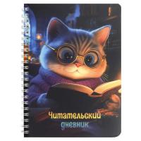 Читательский дневник арт. 70537 КОТ С КНИГОЙ / гребень по длинной стороне, 52 л., печать в одну краску (пантон)