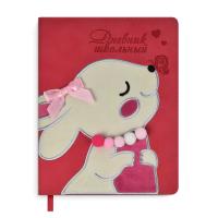 Дневник школьный арт. 54205 / 15 ЗАЙКА (кожзам: А5+; твёрдый переплёт с поролоном, материал обложки: искусственная кожа "Замша"; декор: аппликация из велюра, блинтовое тиснение, вышивка; способ крепления блока: ниткошвейный; вн. блок: 48 л., белый офсет 80 г/м2, печать в одну краску, справочный материал: универсальная шпаргалка; одно ляссе; форзац: печать пантоном.