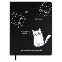 Дневник школьный арт. 68724 / 15 ТРИ КОТА (кожзам: А5+; твёрдый переплёт, материал обложки: искусственная кожа "Виннер"; декор: аппликация из пластика, блинтовое тиснение, тиснение фольгой; способ крепления блока: ниткошвейный; вн. блок: 48 л., белый офсет 80 г/м², печать в одну краску, справочный материал: универсальная шпаргалка; отделка среза: окрашивание пантоном; закладка: одно ляссе; форзац: печать в одну краску; индивидуальная упаковка: ПЭТ-пакет)