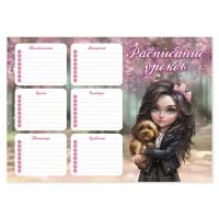 Расписание уроков А4, арт. 68852/ 50 БРЮНЕТКА С СОБАЧКОЙ (210x297 мм, материал: мелованный картон 235 г/м², полноцветная печать, декор: выборочный УФ-лак; цвет: коричневый, розовый, чёрный; индивидуальная упаковка: нет)