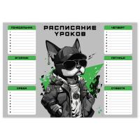 Расписание уроков А4, арт. 68857/ 50 КРУТОЙ ПЕС (210x297 мм, материал: мелованный картон 235 г/м², полноцветная печать, декор: выборочный УФ-лак; цвет: чёрный, серый, зелёный; индивидуальная упаковка: нет)
