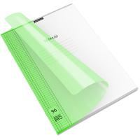 Тетрадь общая ученическая формата А4 (210x297 мм). Двойная обложка: внешняя выполнена из высококачественного износостойкого цветного глянцевого пластика с фактурой «зеркало», внутренняя — из офсетной бумаги. В блоке 96 листов в клетку. Бумага офсетная плотностью 60 г/м2. Цвет линовки — синий. Скругленные уголки обложки и блока. Тип скрепления — скоба.