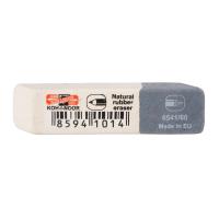 Ластик сделан из натурального каучука и обеспечит лёгкое и чистое стирание без повреждения поверхности бумаги и без образования бумажной пыли. Поставляется в прямоугольной форме со скошенными краями, позволяющими стирать даже тонкие линии. Ластик разделен на две части: белая стирает надписи, сделанные чернографитным карандашом, серая - чернила. Размер - 50х13х7 мм.