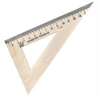 Размер треугольника: длина шкалы - 160 мм, угол - 30°. Угольник с прямым углом - 30° и 60°, изготовлен из твердолиственных пород древесины, имеют износостойкую одностороннюю шкалу.