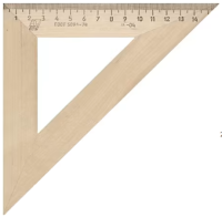 Прямоугольный треугольник с углами при основании 45 градусов. Используется для занятий черчением, построения графиков, проектирования. Длина стороны с делениями 160 мм.