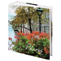 Состоит из 76 полипропиленовых листов размером 17,5х22 см с карманами и вмещает 304 фотографии размером 10х15 см по 2 штуки на странице. Обложка фотоальбома выполнена в голубых, красных и зеленых тонах с изображением городского пейзажа, а его листы склеены в единый блок. Размер альбома - 18х23 см.
