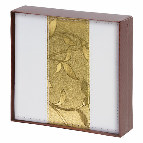 Состоит из 50 бумажных листов размером 15,5х21 см с карманами и вмещает 200 фотографий размером 10х15 см, по 2 штуки на странице. Обложка фотоальбома скомбинирована из материала под кожу белого цвета и золотистой вставки с рельефным рисунком. Фотоальбом с книжным переплетом отличается повышенной прочностью и долгим сроком службы. Размер - 20,7х21,8 см.