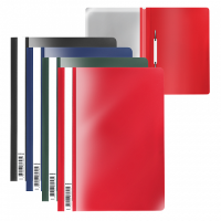 Папка-скоросшиватель формата А4 из высококачественного пластика с текстурой поверхности "апельсиновая корка", на которой не видно отпечатков пальцев и мелких царапин. Предназначена для быстрого сшивания, хранения и просмотра документов. Цвет папки – ассорти: черный, синий, зеленый, красный. Механизм - механический скоросшиватель. Папка вмещает до 130 бумажных листов. Размер - 312х230 мм, толщина - 0.14 мм.