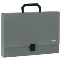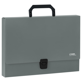 Папка-портфель c 1 отделением «СТАММ» серии «Стандарт» формата А4 предназначена для транспортировки документов и различных предметов. Вмещает до 220 листов. Она изготовлена из пластика толщиной 1000 мкм. Выполнена в классическом офисном сером цвете. Портфель размером 330*235*35 мм застегивается на замок, имеет пластиковую ручку черного цвета. Папка упакована в пакет.