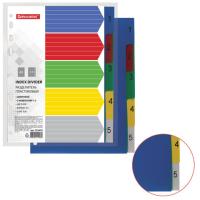 Изготовлены из пластика толщиной 0,12 мм. В комплект входят 5 листов синего, красного, серого, зеленого и желтого цвета, обеспечивающих возможность сортировки документов по цифрам, а также титульный лист для оглавления. Универсальная перфорация позволяет подшивать разделители во все типы папок. Размер - 162х210 мм.