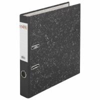 Папка формата А4 с вертикальной ориентацией изготовлена из качественного картона с покрытием под "мрамор". Ширина корешка в 50 мм позволяет разместить до 350 листов. Прорези для колец на внешней крышке позволяют оставаться папке закрытой даже при большом количестве бумаг, а надежный арочный механизм легко справляется с ежедневными нагрузками. Корешок снабжен этикеткой для маркировки содержимого, что позволяет структурировать информацию.