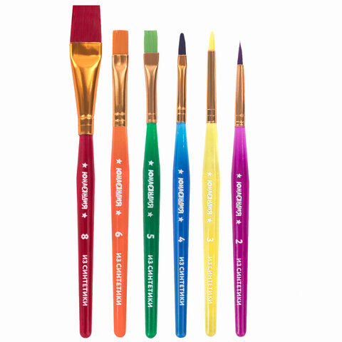 Набор из шести кистей разного размера ЮНЛАНДИЯ позволяет начинающим художникам решать любые творческие задачи в детском саду, школе и дома.